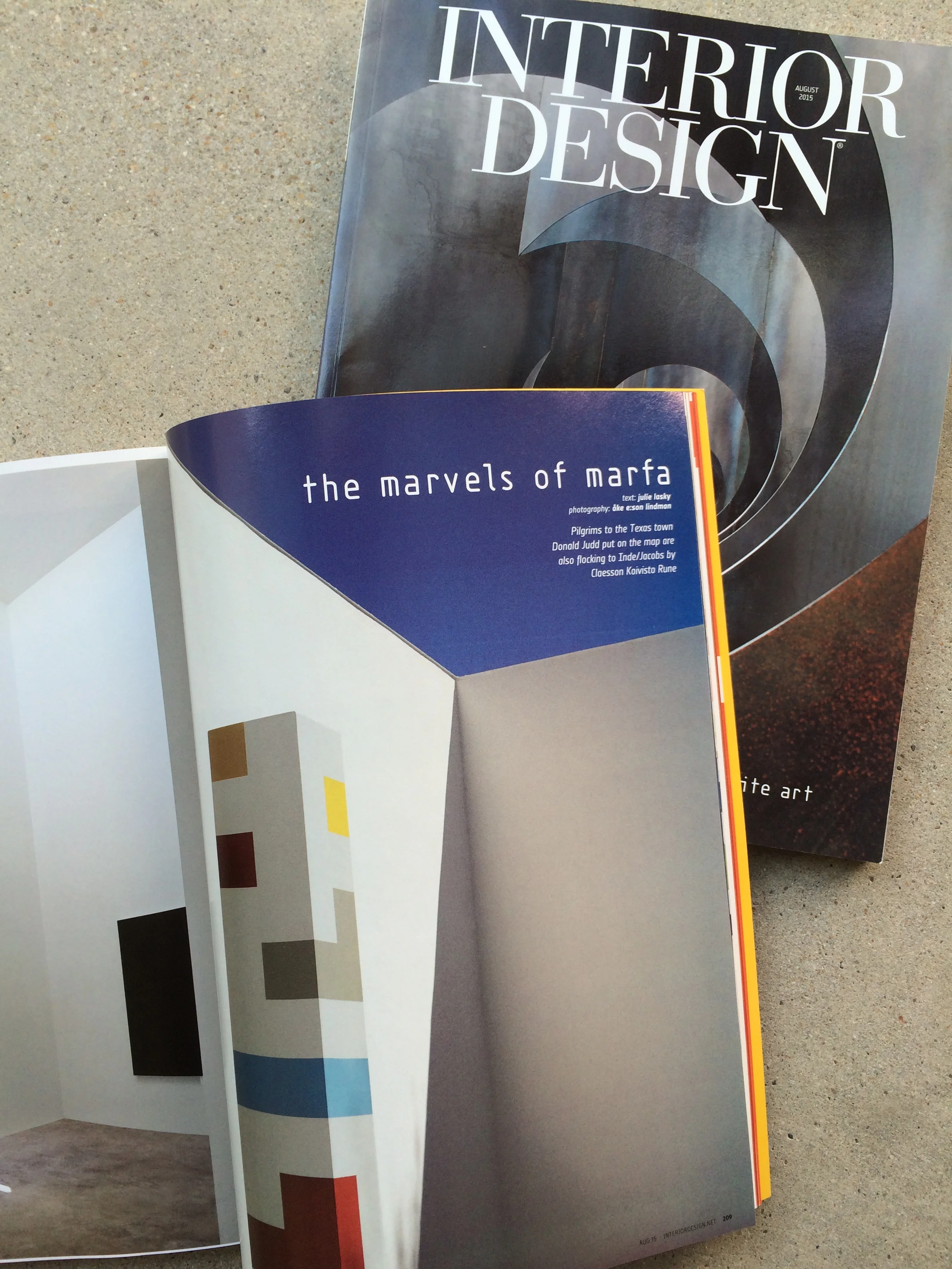 We are pleased to be included in the August 2015 issue of Interior Design. So, all of you folks in town for Design Marfa, come by to see the great architecture by Claesson Koivisto Rune.